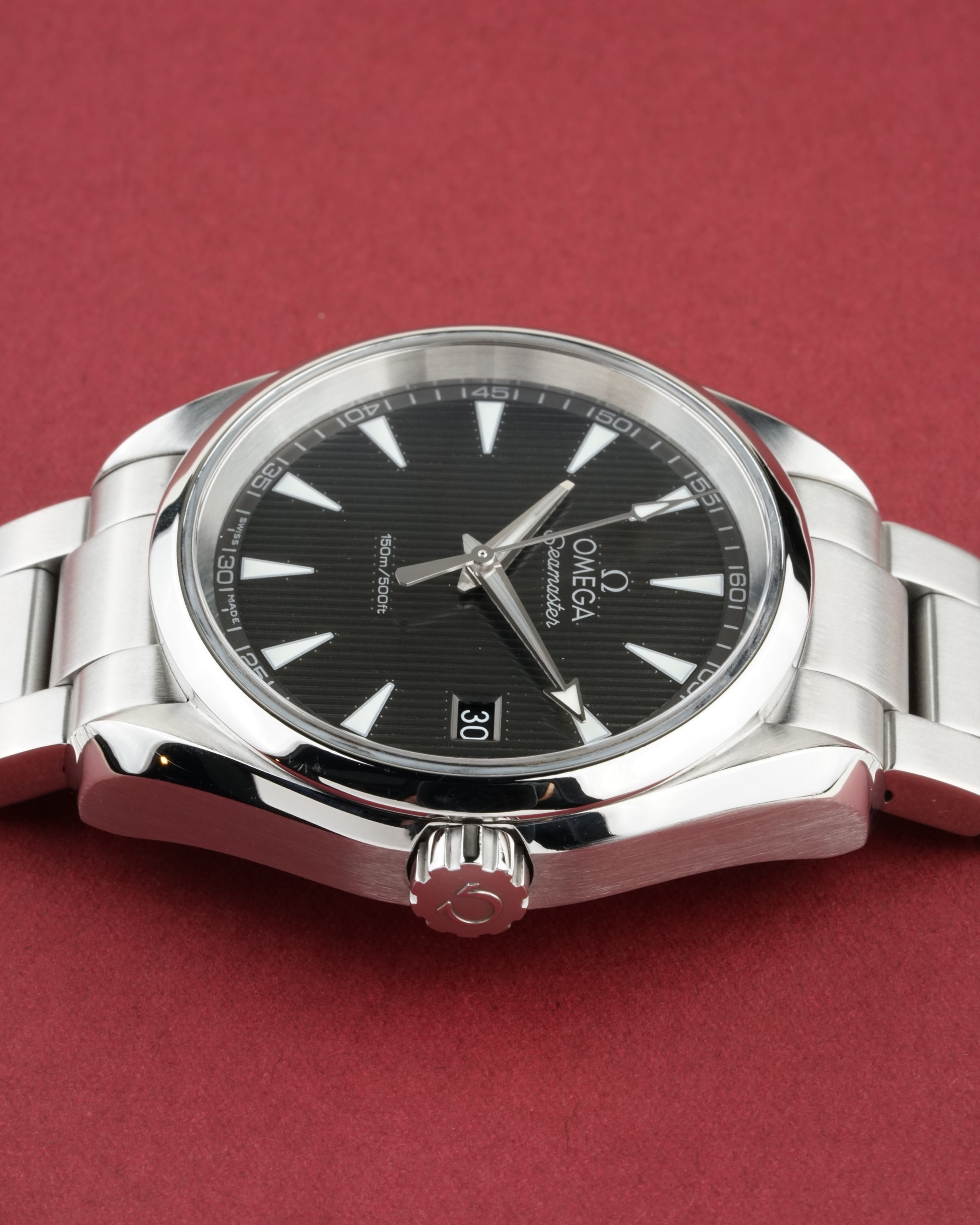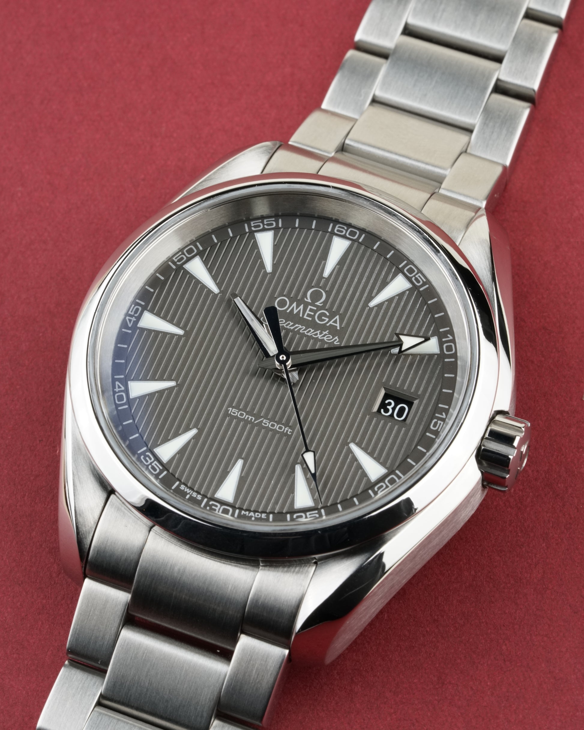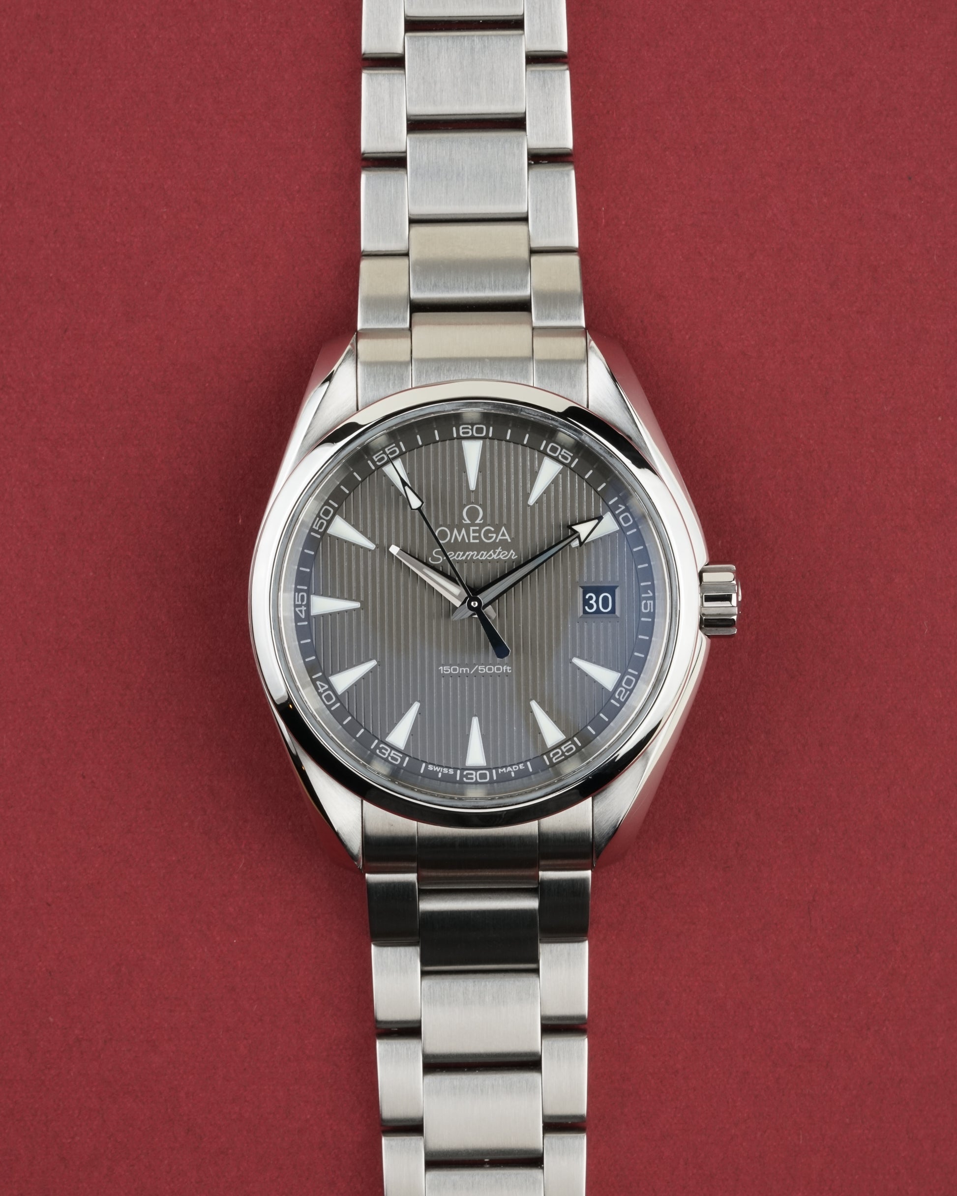The Omega Seamaster Aqua Terra 150M Ref. 231.10.39.60.06.001 is a refined expression of maritime heritage and modern precision. Its 38.5 mm stainless steel case showcases a sophisticated gray dial with the signature "Teak Concept" vertical pattern, comfortably fitting a wrist up to 19 cm. Powered by the reliable Omega Caliber 4564 quartz precision movement, this timepiece offers grab-and-go convenience with the robust build quality of a true Seamaster. (Papers dated 10/2021).
